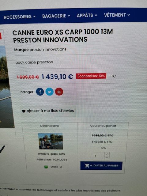 Marque PRESTON euro XS 1000 13 m avec son kit 2,90 m