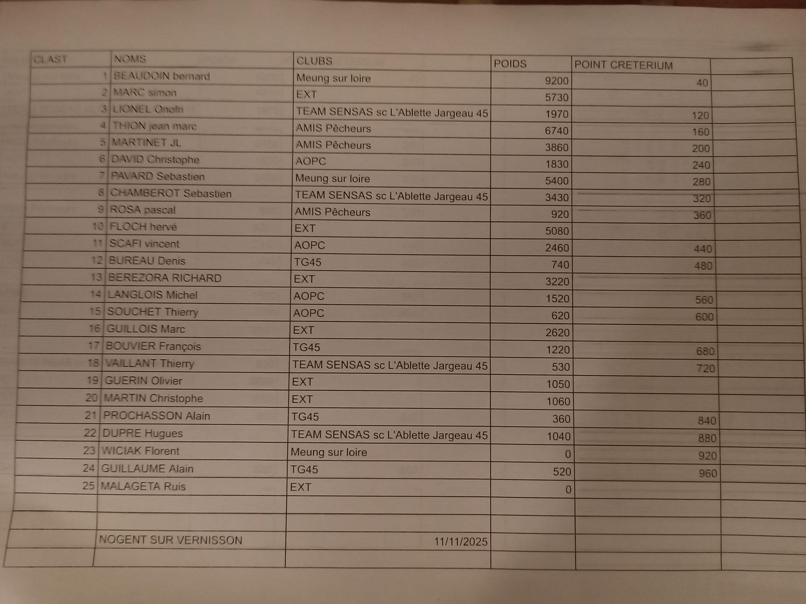 Voici les résultats du concours du 11 novembre.