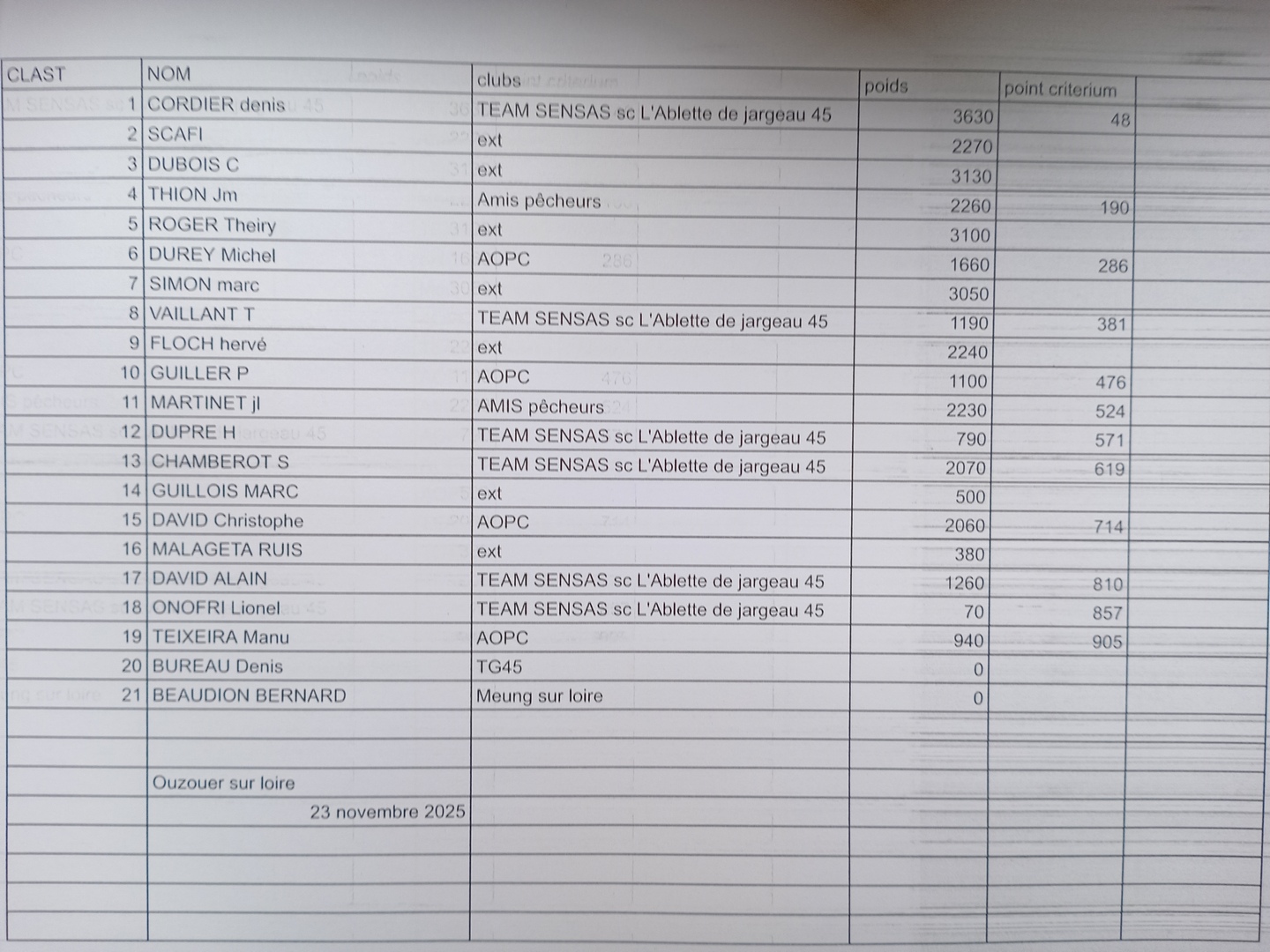 Voici les résultats du concours du 23 novembre.