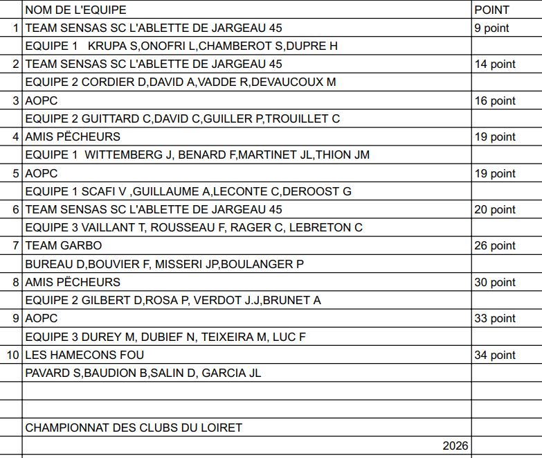 Les meilleurs clubs du département se sont affrontés dans le plan d’eau de La Quiaulne le 22 mars dernier. Voici le classement :