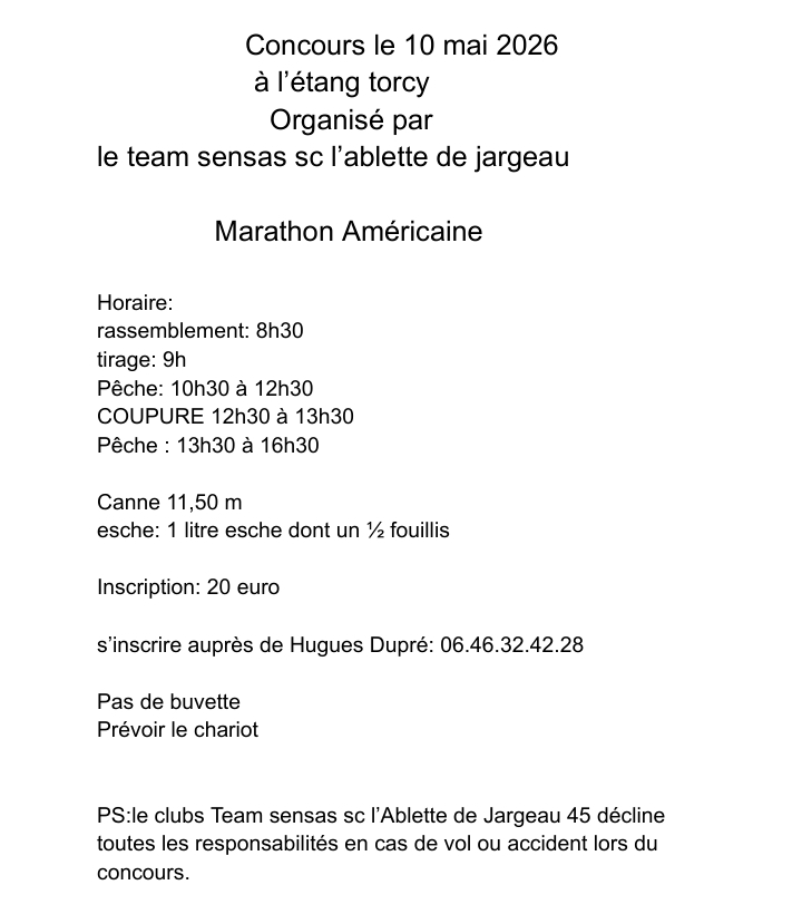 Le Team Sensas 45 et l’Ablette de Jargeau vous propose ce concours dans l’étang de Torcy.